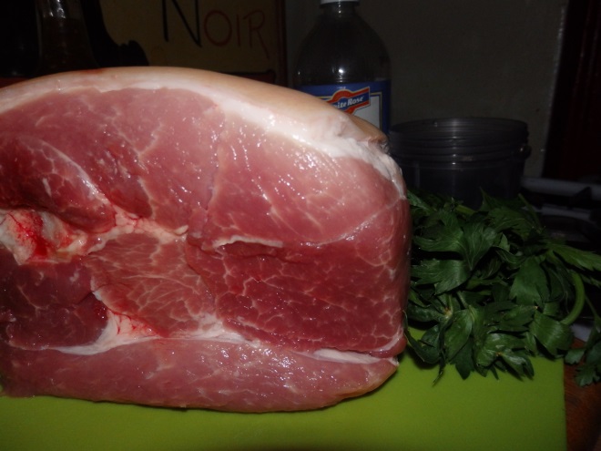 • 7-8 lbs pork shoulder (bone in) and one onion chopped